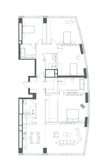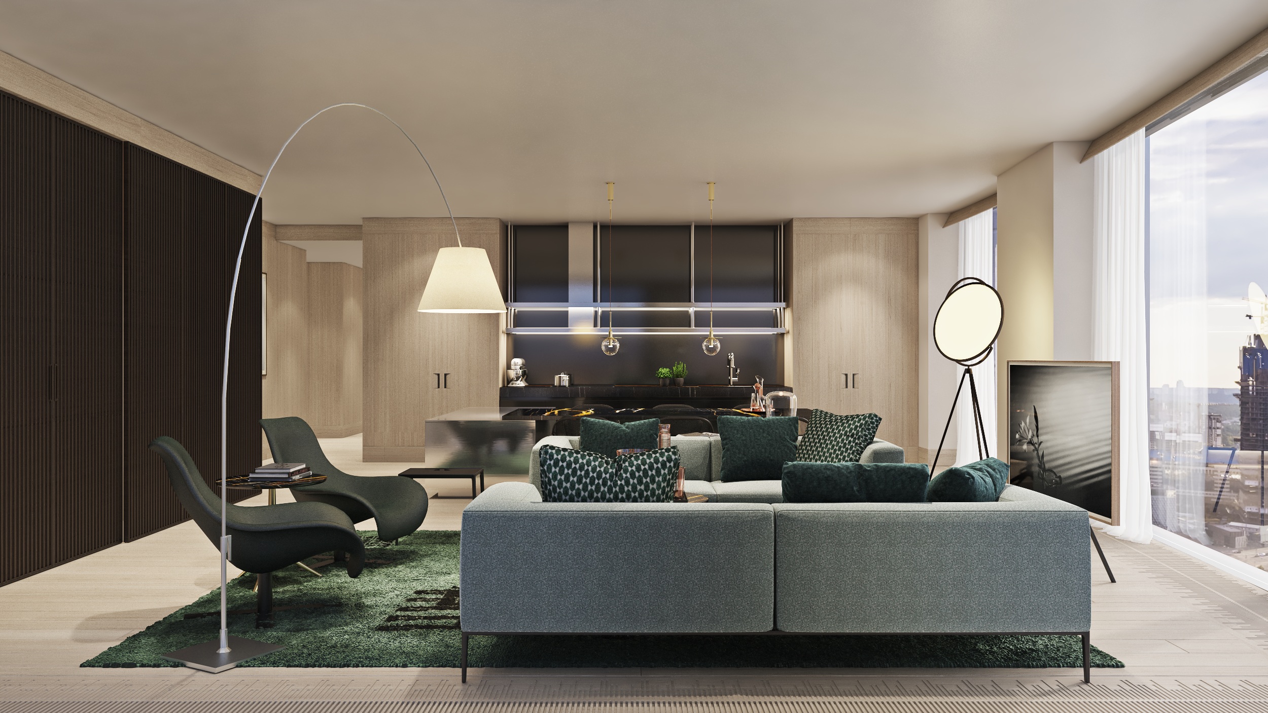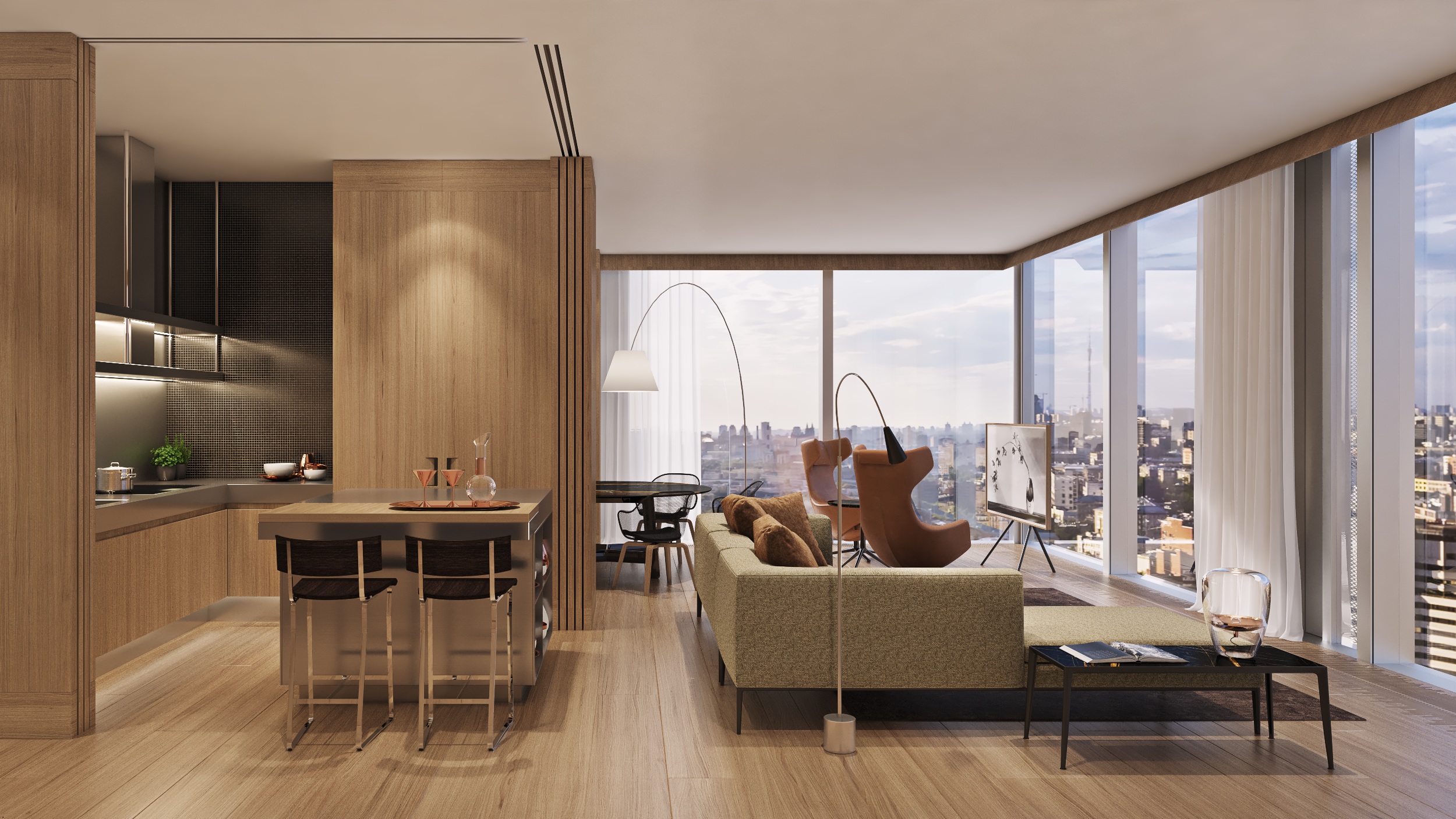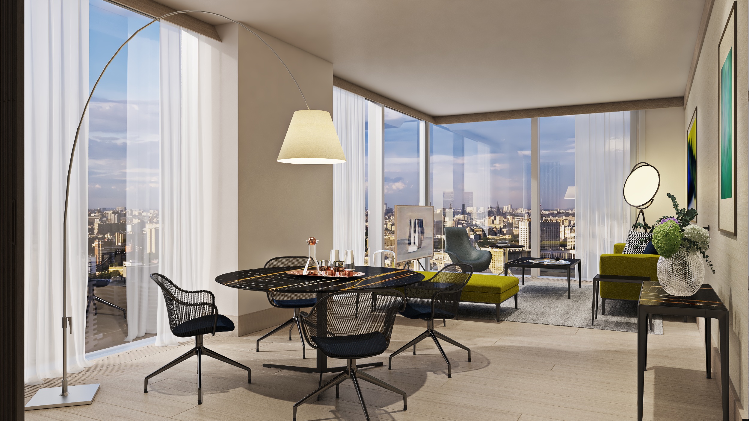 3 башни капитал групп, 720 квартир площадью от 47 до 338 м2 с панорамными видами на город.